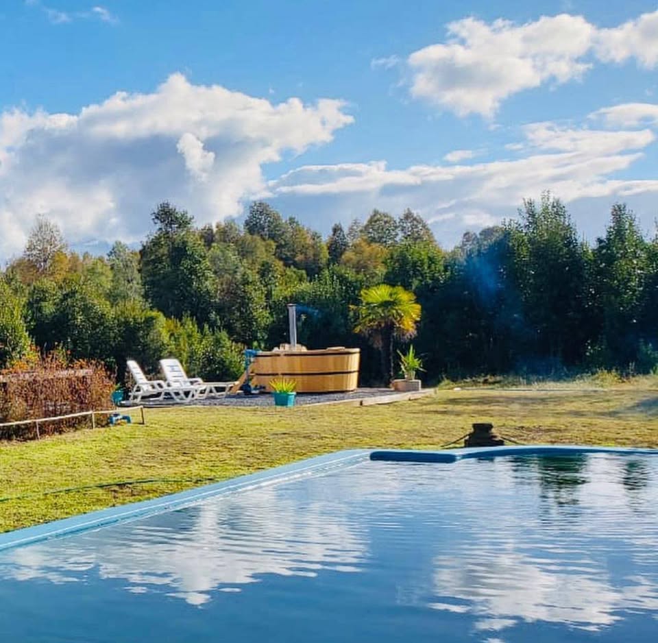 🌟 Espacios exteriores y extras que marcan la diferencia: 🔥 Quincho ideal para compartir 🏊 Piscina de 10 metros 🛁 Tinaja de ciprés para 10 personas 🌅 Amplia terraza con vista al volcán
