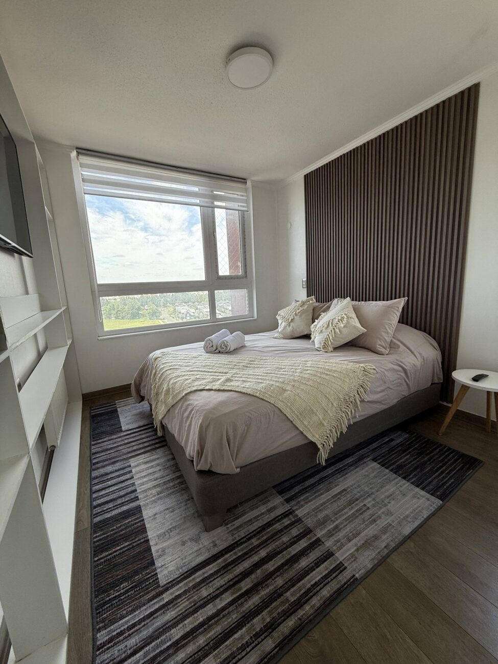 Moderno y acogedor departamento con vista a volcanes, ideal para turistas o profesionales.