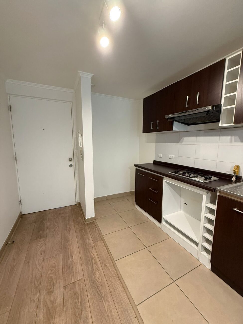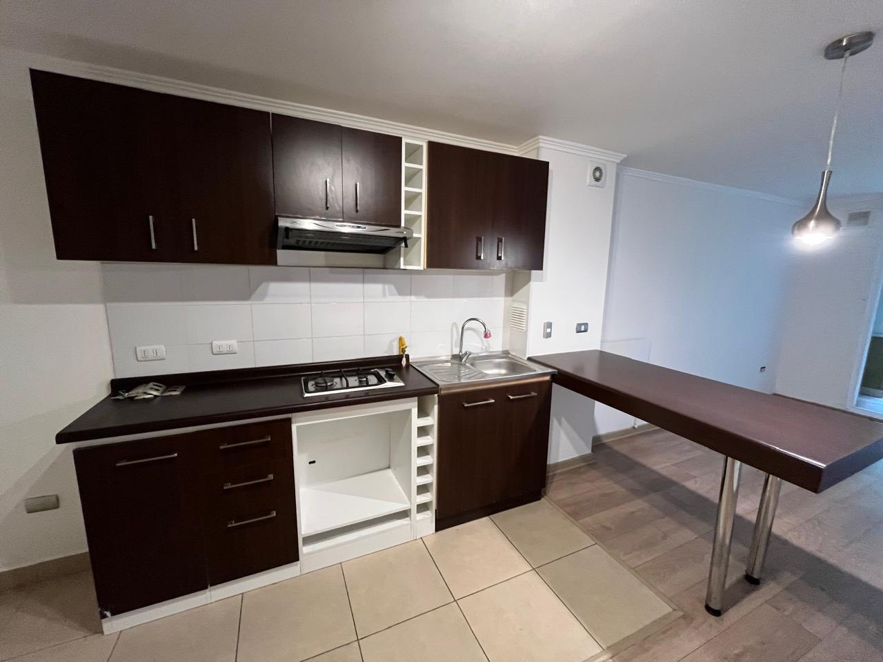 Cocina americana amoblada con campana y encimera