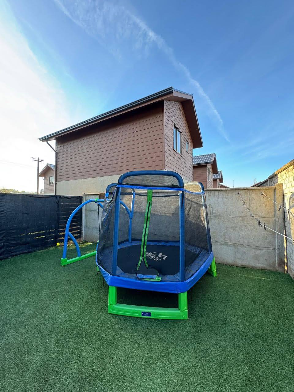 – Patio trasero con pasto sintético y bodega.