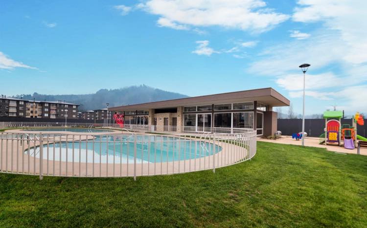 Piscina con amplias áreas verdes y vista al Cerro Ñielol.